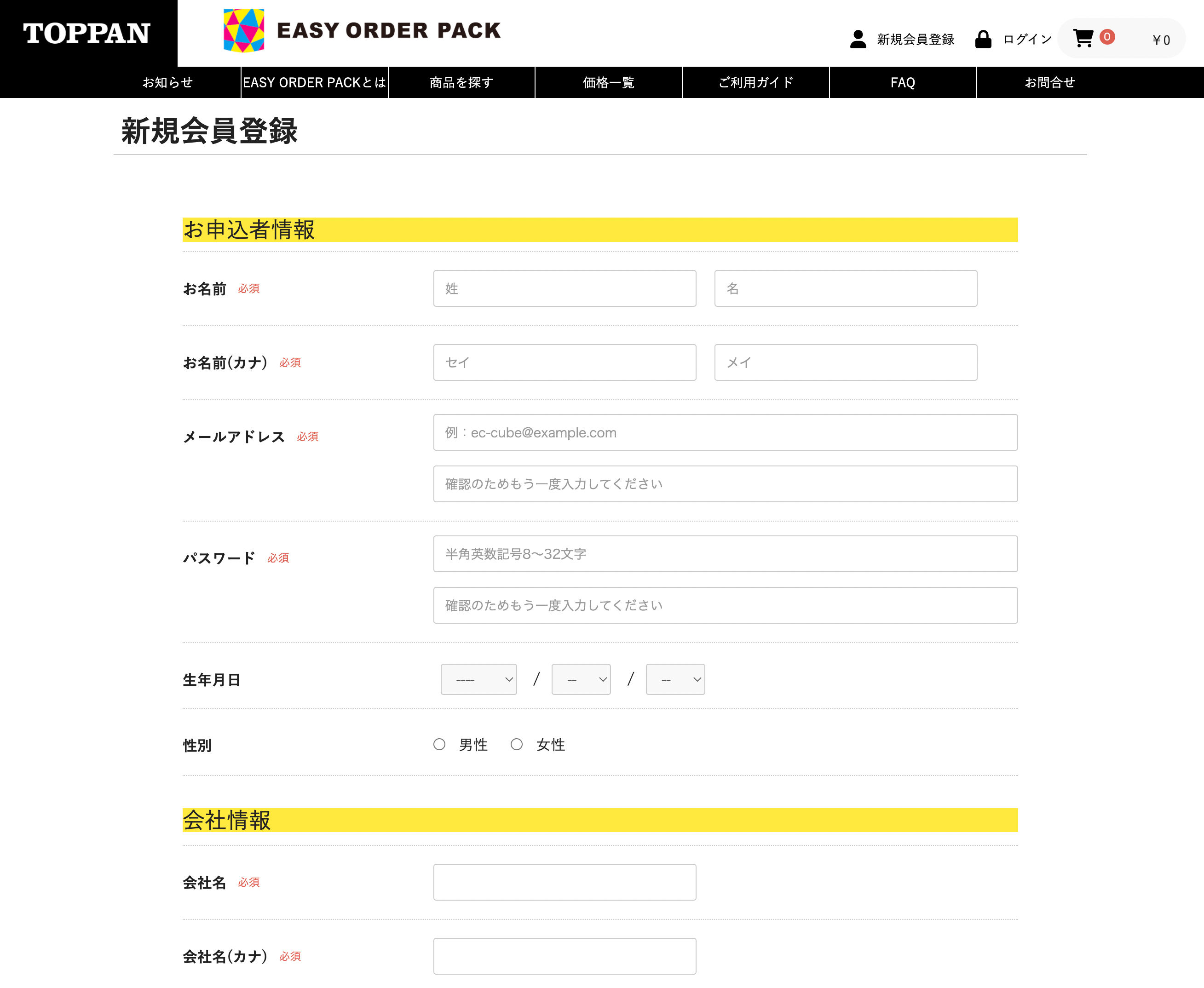 新規会員登録の入力画面が表示されます。